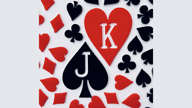 Effect 3: A spectator freely selects a card. The magician holds the card and gives it a gentle press. All the suit fragments fall out, and the card held in the magician’s hand turns blank.